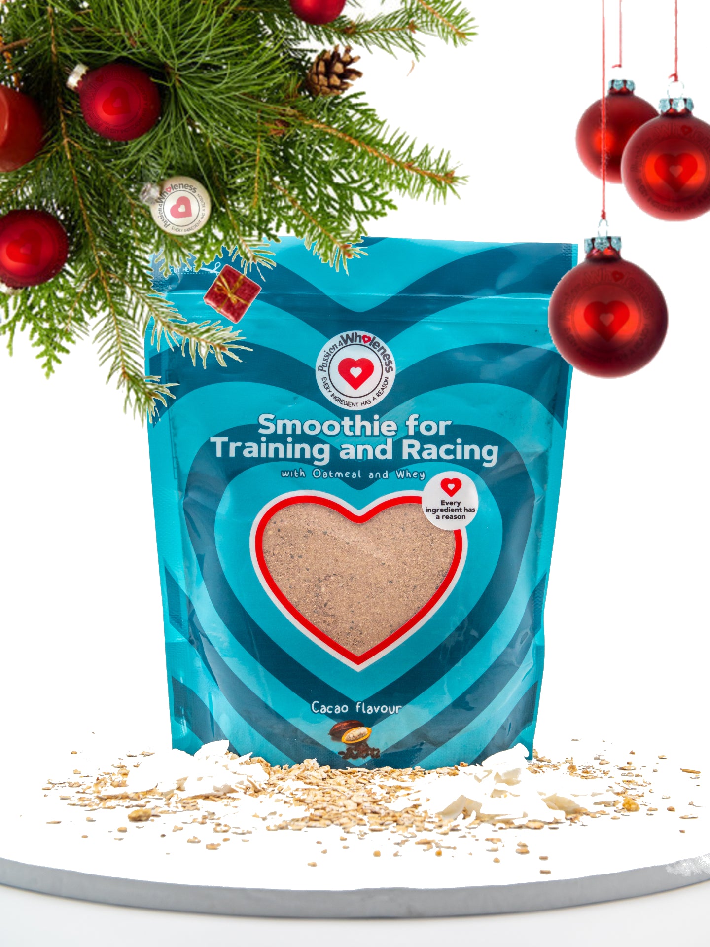 A delicious smoothie for everyday exercise or as a breakfast before a race. Balanced mix of low GI oatmeal, chia seeds for omega 3 fat, whey protein for muscle recovery, GMO free soy milk powder for extra protein and real cacao as a natural Superfood and anti-oxidant. Just add, water, milk, yogurt